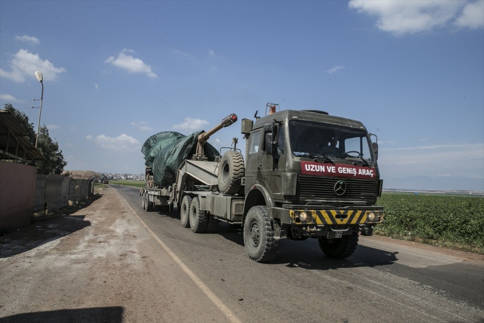 Türk Silahlı Kuvvetleri (TSK) tarafından birliklere takviye amacıyla gönderilen fırtına obüsü ve tank yüklü tırlar ile zırhlı personel taşıyıcılar Hatay'a ulaştı.