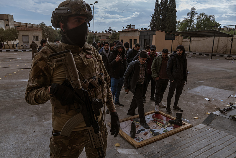 Suriye'nin başkenti Şam'ın Mezze bölgesindeki askere alım noktası, yeni yönetimin kurduğu uzlaşı ve kimlik tespiti merkezi olarak kullanılıyor.