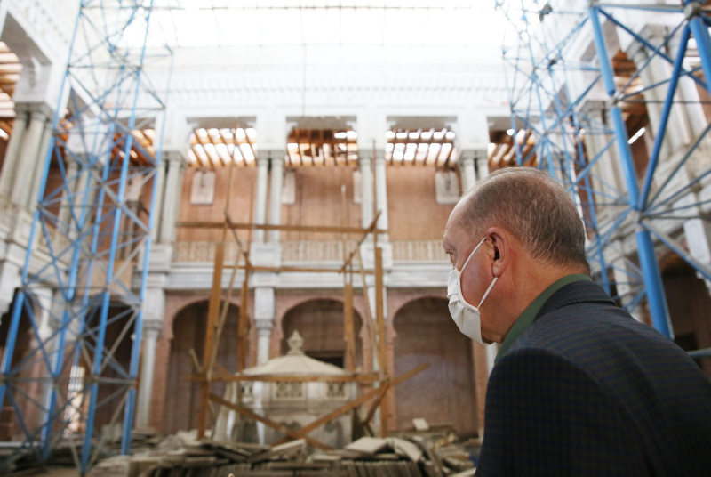 Taksim'de yapılan caminin cuma günü Başkan Recep Tayyip Erdoğan tarafından ibadete açılması bekleniyor. Camideki son durum kameralara yansıdı.