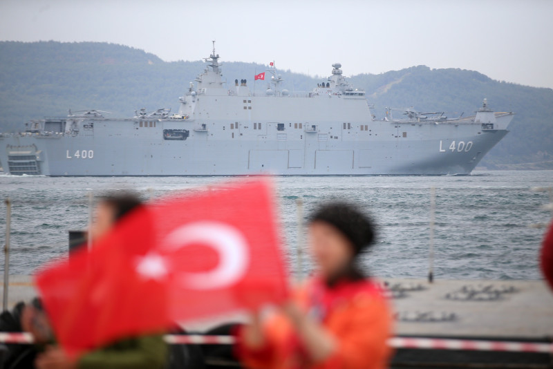 Türk Silahlı Kuvvetlerinin en büyük savaş gemisi, yerli ve milli üretim TCG Anadolu, Çanakkale Boğazı'ndan geçti.