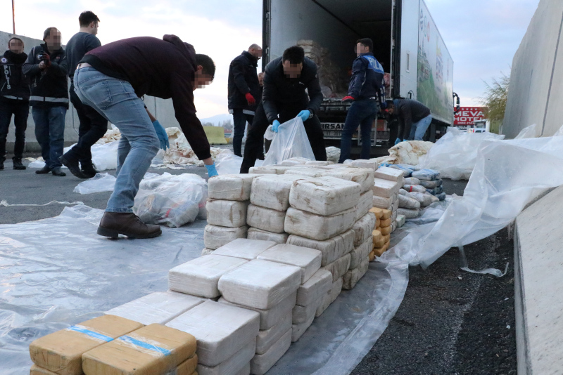 Bir istihbaratı değerlendiren İl Emniyet Müdürlüğüne bağlı Narkotik Suçlarla Mücadele Şubesi ekipleri, Erzincan-Erzurum kara yolundaki uygulama noktasında durumundan şüphelenilen 06 BCD 99 plakalı tırı durdurup, kapalı olan çekicisinde arama yaptı.