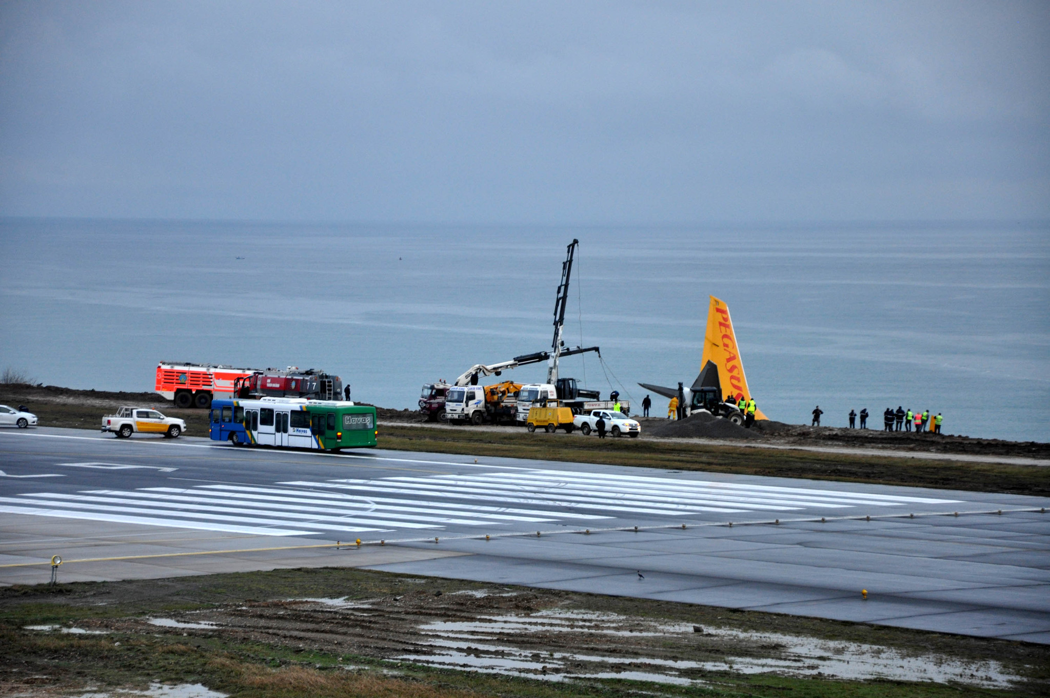 Pegasus Havayolları'nın dün akşam Ankara-Trabzon seferini yapan uçağının Trabzon Havalimanı'na inişi sırasında pistten çıkmasının ardından uçak ve kaza yeri günün ağarması ile havadan görüntülendi.