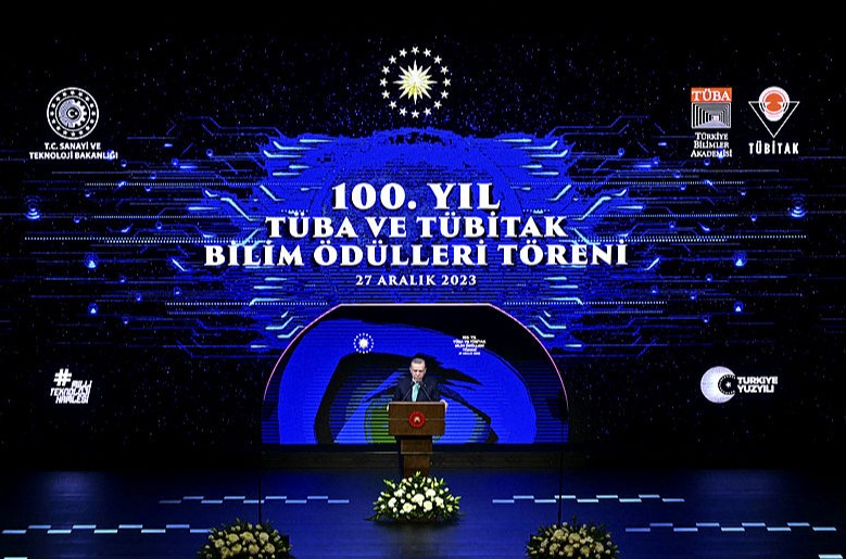 Başkan Erdoğan, "Bu sene 77 bilim insanımız TÜBA ve TÜBİTAK Ödülleri'ne layık görüldü. Yüzüncü Yıl TÜBİTAK Ödülleri kapsamında ise 21 farklı üniversite ve araştırma kurumumuzdan bilim insanımıza 7 bilim ödülü, 1 özel ödül, 1 hizmet ödülü ve 18 teşvik ödülü verdik." ifadelerini kullandı.