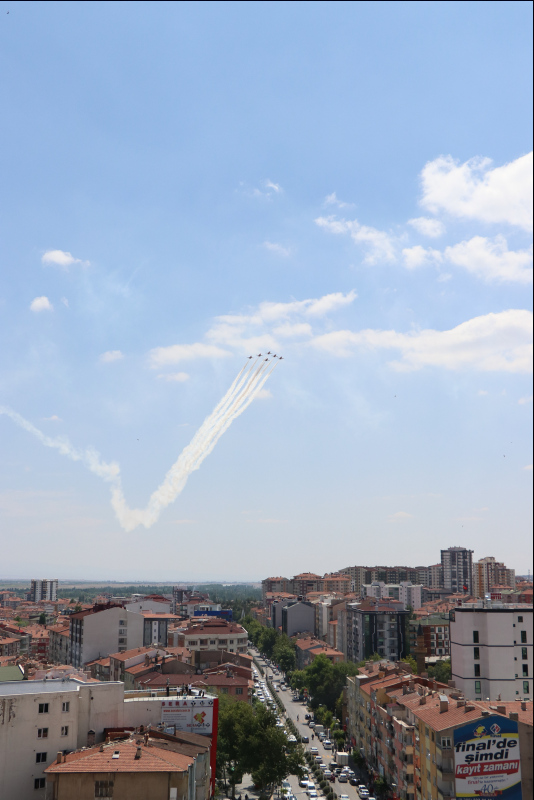 Türk Hava Kuvvetlerinin akrobasi timi "Türk Yıldızları", Niğde semalarında selamlama uçuşu gerçekleştirdi.