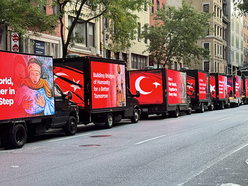 Birleşmiş Milletler 79. Genel Kurulu dolayısıyla dünyanın dört bir yanından ziyaretçi ağırlayan şehirde, "Beşin Ötesinde: Herkes İçin Küresel Bir Sistem İnşa Etmek", "Beşin Ötesinde Küresel Bir Sistem: Herkes İçin Daha Adil Bir Gelecek", "Daha Adil Bir Dünya İçin Reforme Edilmiş Bir BM", "Türkiye: İnsani Yardım ve Sürdürülebilir Kalkınmada Ortak", "Adil Bir Dünya İçin, Her Adımda Birlikte" ve "Daha İyi Bir Yarın İçin İnsanlığın Köprülerini İnşa Etmek" başlıklarıyla hazırlanan görsellerin yer aldığı dijital ekranlı kamyonetler dolaştırıldı.