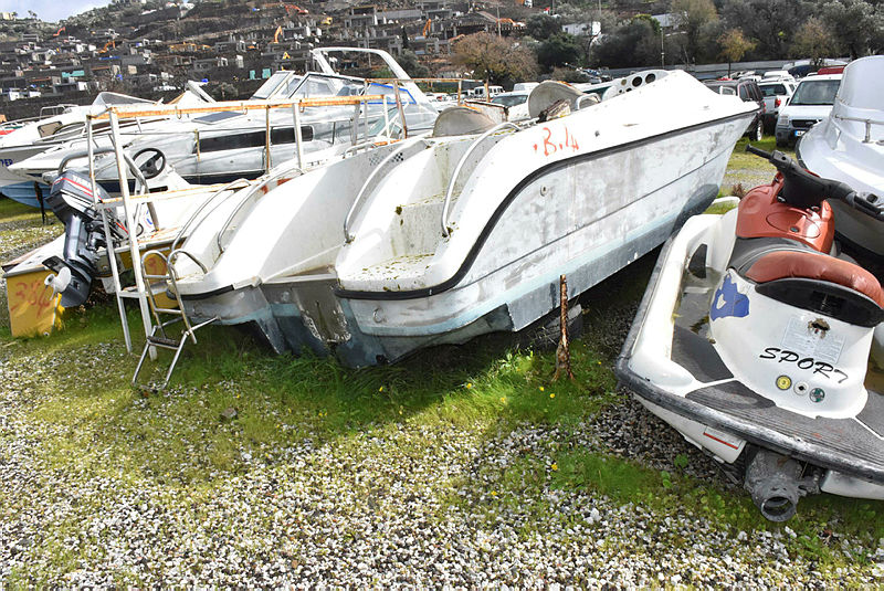 Yalıkavak Mahallesi'nde 32 dönümlük arazi üzerinde kurulan yediemin otoparkı, yasa dışı yollardan yabancı ülkelere geçmek isterken yakalanan kaçak göçmenlerin kullandığı deniz taşıtlarıyla dolup taşıyor.