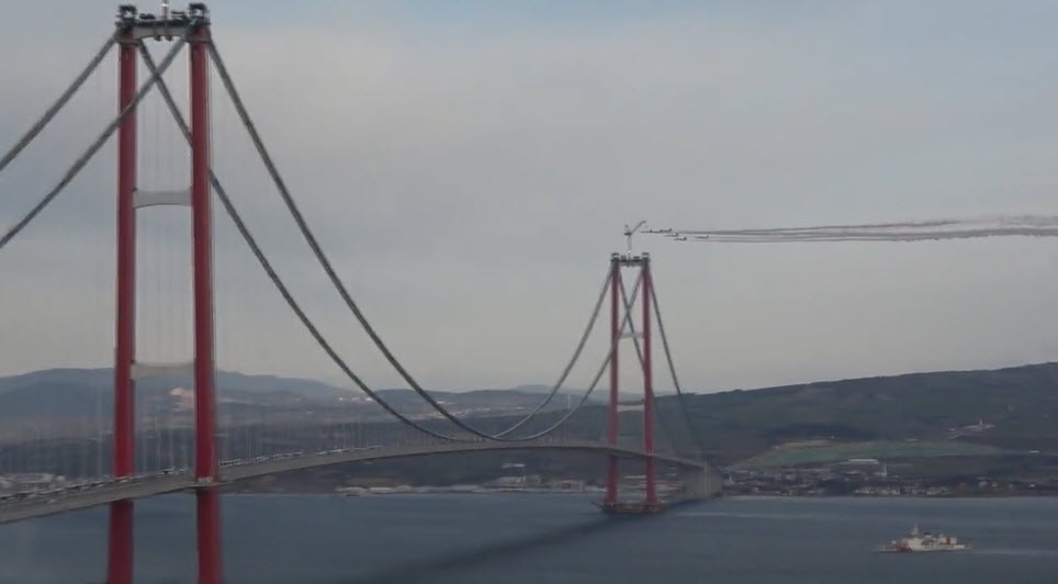 Bakanlığın sosyal medya hesabından yapılan paylaşımda, Türk Yıldızları'nın, 18 Mart Şehitleri Anma Günü ve Çanakkale Deniz Zaferi'nin 107'nci yıl dönümünde hizmete giren 1915 Çanakkale Köprüsü'nün açılış töreninde gösteri uçuşu yaptığı hatırlatıldı.