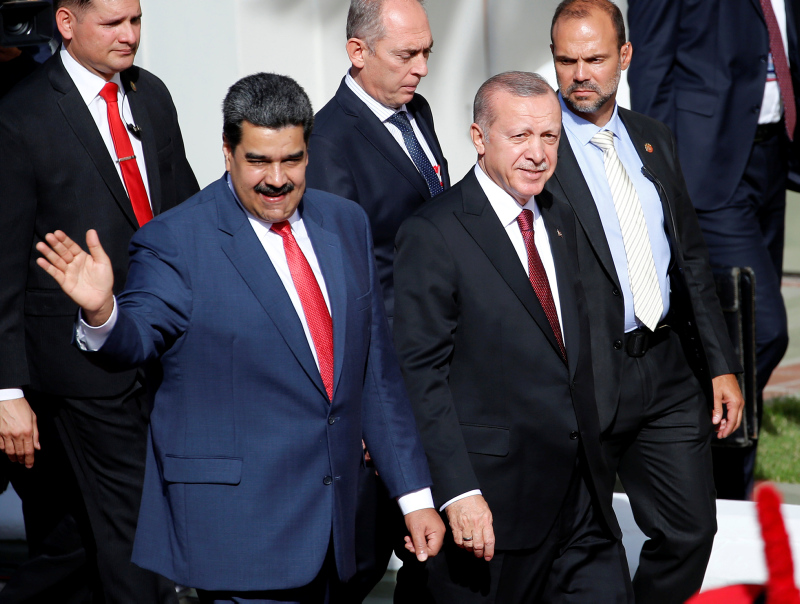 Türkiye Cumhurbaşkanı Recep Tayyip Erdoğan, Venezuela Devlet Başkanı Nicolas Maduro tarafından resmi törenle karşılandı.