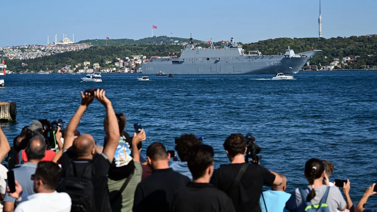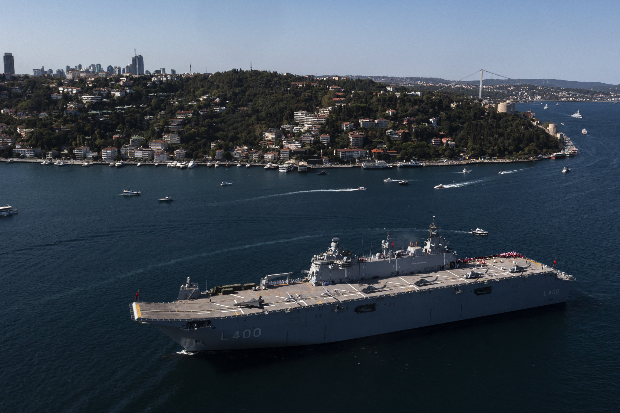 TCG Anadolu İstanbul Boğazı'nda yapılan 'Mavi Vatan Boğaz Geçişi' için Sarayburnu'ndan sabah 06.30'da hareket etti.