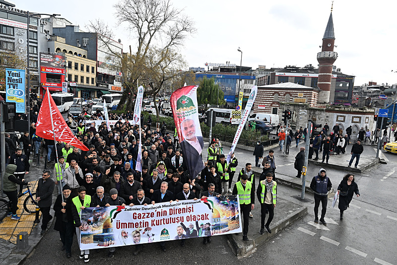 Peygamber Sevdalıları Vakfı ve Özgür Kudüs Platformu öncülüğünde Bülbüldere Fevziye Hatun Camisi önünde toplanan gruptakiler, Üsküdar Meydanı'na yürüdü. Göstericiler, İsrail aleyhine sloganlar atıp pankartlar taşıdı.