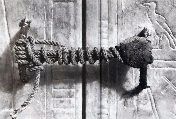 Mısır'da yaşamış firavunlardan Tutankamon'un mezarı bulunduğunda, kapısı bu şekilde kilitlenmiş haldeydi. Milat'tan Önce 1323 yılında ölen Firavun Kral Tutankamon'un mezarı 1922'de keşfedildiğinde, kapısındaki halatlarla bağlanmış ve mühürlenmiş kilit, aradan geçen 3245 yıla rağmen hala sağlamdı. Kapının üstündeki mühürlü kilit, İngiliz kaşif Howard Carter'ın ekibindeki fotoğrafçılar tarafından böyle görüntülendi.