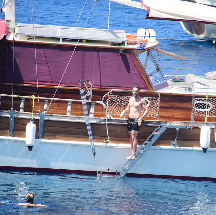 Çift, kiraladıkları guletle Göcek'ten denize açıldı. Son derece mutlu görünen İynemli ve Önal'ın şakalaşma anları objektife de yansıdı.