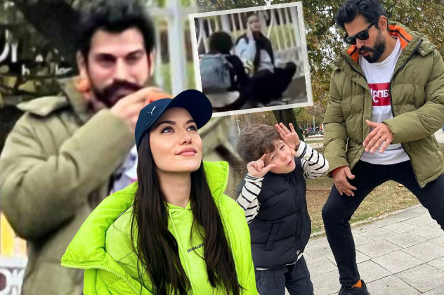 Burak Özçivit ile Fahriye Evcen, oğulları Karan ile birlikte güzel havanın tadını çıkarmak için parka gitti.