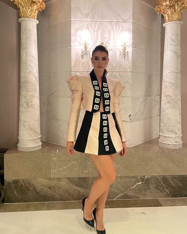 Burcu Özberk, derin göğüs dekolteli elbisesi ile verdiği pozları Instagram'ın hikaye kısmında yayınladı.