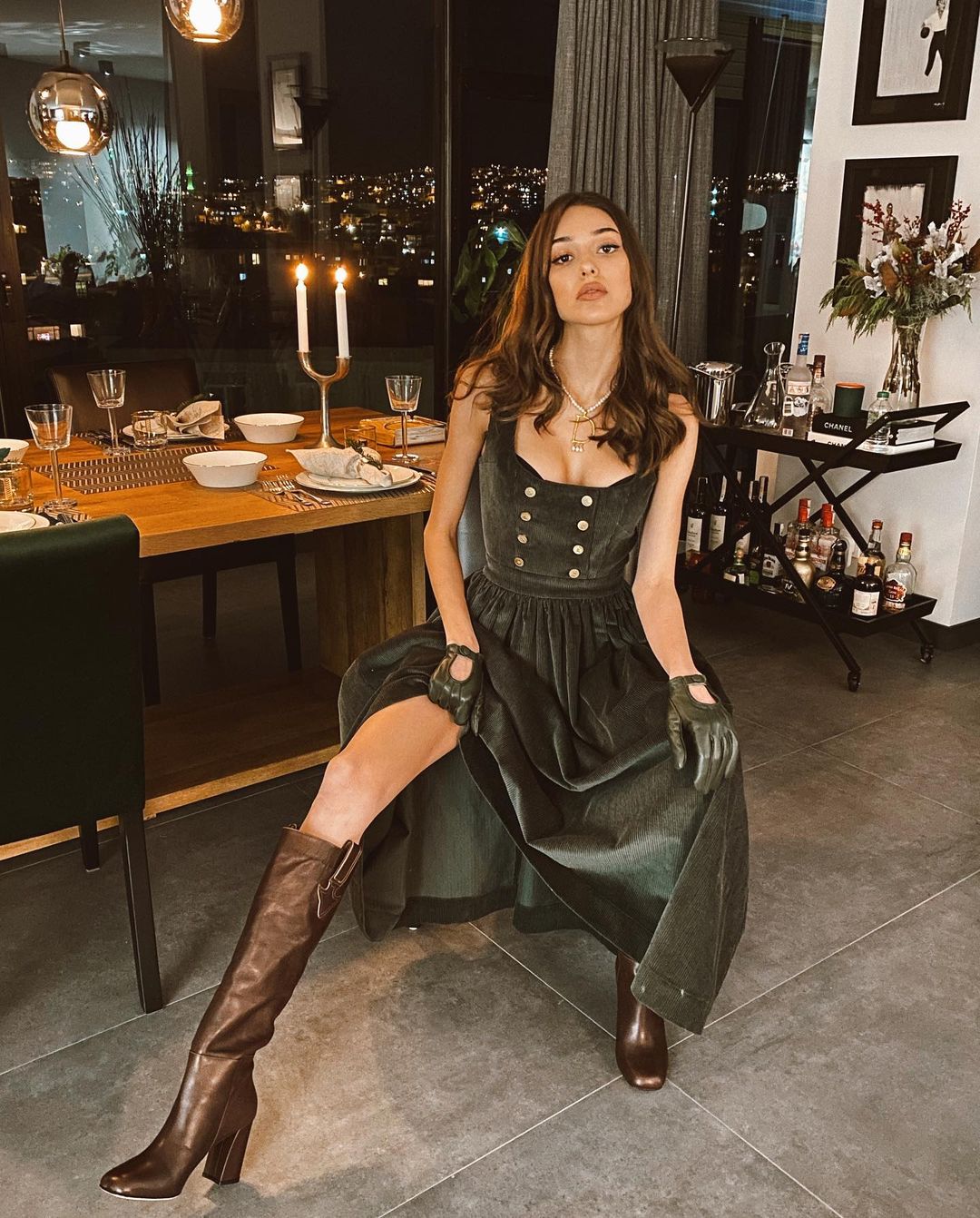 Deniz, derin yırtmaçlı siyah mini elbisesiyle verdiği pozları Instagram sayfasında takipçilerinin beğenisine sundu.