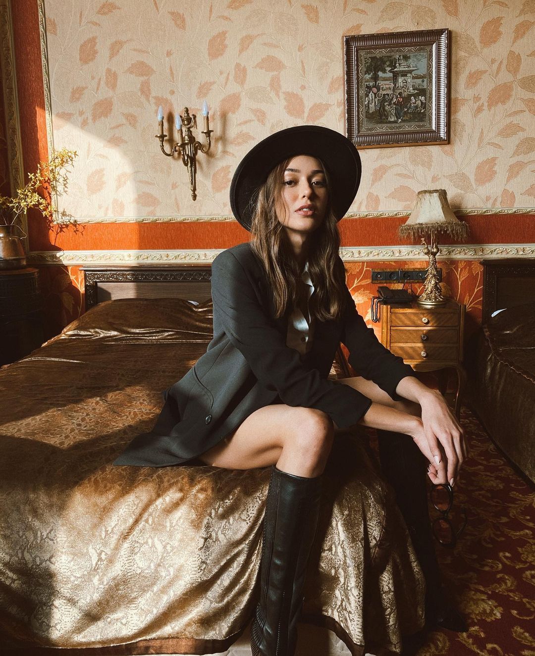Ünlü oyuncu, Ergüçlü ile yatakta verdiği bir pozu Instagram hesabında takipçilerinin beğenisine sundu.