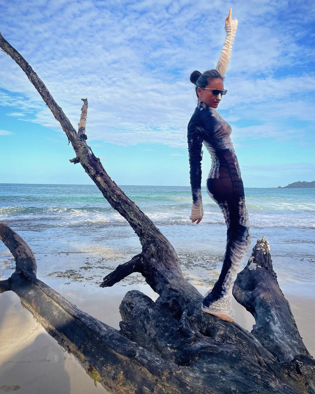 Yere yatarak güneşlendiği anlarda kameraya poz veren ünlü isim, bu paylaşımıyla da yine adından söz ettirdi.