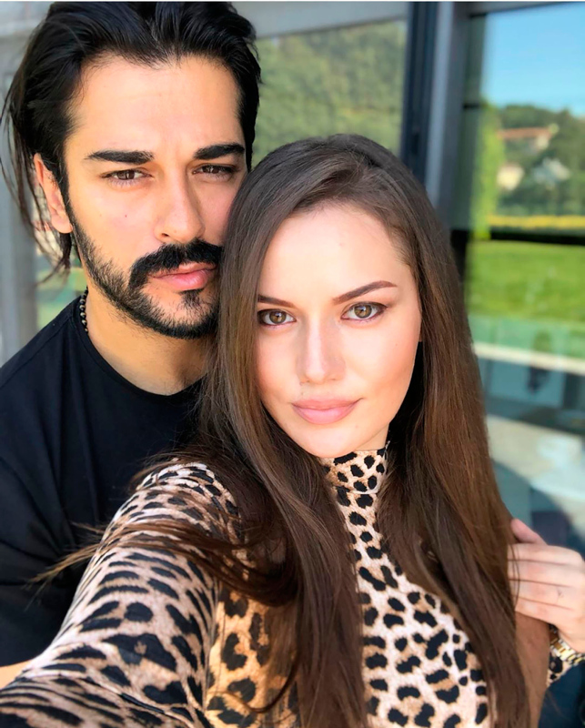 Evcen, Instagram hesabının hikaye bölümünden eşi Burak Özçivit ile çekildiği fotoğrafa "Bak bakıyım bana dedim de bu nasıl bakış" yazısını ekledi.