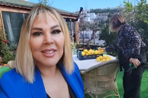 Sabahları taze yumurtasını kümesten alan ünlü sanatçı, bahçesindeki ağaçlardan meyve topluyor.