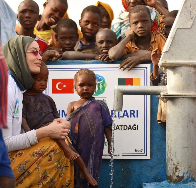 Kamerun'da yardıma muhtaç çocuklarla bir araya gelen oyuncu, onlarla çekilen fotoğraf karelerini Instagram hesabında ''Beni masum yüreklerde arayın diyen Rabbim... Seni mazlumun duasında, yetimin gülüşünde buldum. Artık senden büyük sevgili, yolundan büyük sevda yoktur bize'' notuyla paylaştı.
