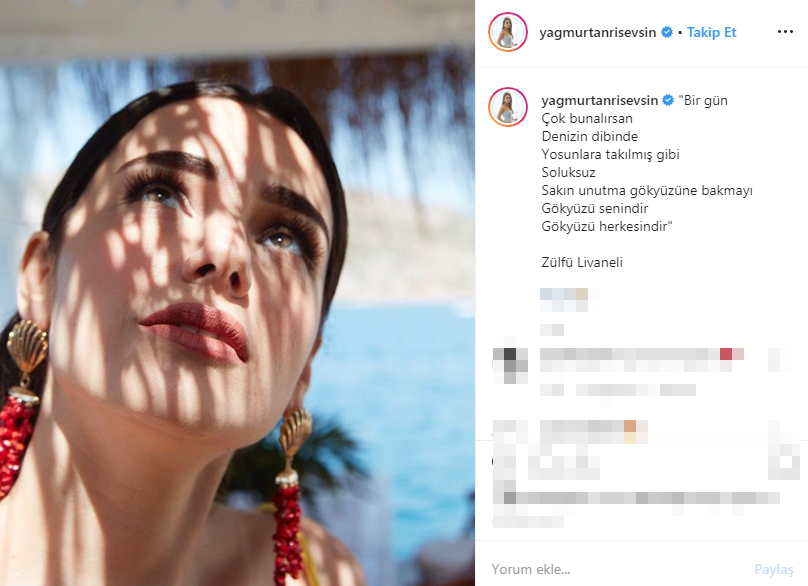 Oğuzhan Koç ile yeni ayrılan Yağmur Tanrısevsin, eski aşkının, dostu Demet Özdemir ile aynı mekanda eğlenmesinden sonra Demet Özdemir'i takipten çıkmıştı. Yağmur şu satırları sayfasında paylaştı: