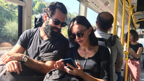 Hande Ataizi ile sevgilisi Dinç Aydoğdu, geçen hafta Ümraniye'de bir halk otobüsünde görüntülendi. Daha önce de metrobüste objektife takılan ve trafik sıkıntısı yaşamamak için sık sık toplu taşımayı kullandığını söyleyen Ataizi, diğer yolcuların meraklı bakışlarına aldırmadan Aydoğdu ile sohbetine devam etti.