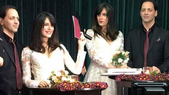 Mutlu çifti bu özel gününde yakın dostları yalnız bırakmadı. Törenden renkli kareler sosyal medyada paylaşıldı.
