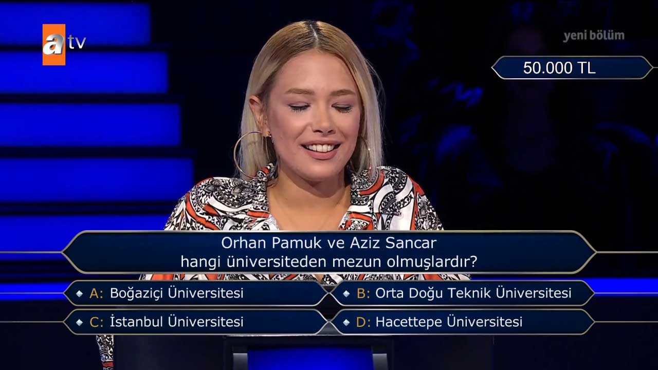 Milyoner'in yayınlanan son bölümünde "Orhan Pamuk ve Aziz Sancar hangi üniversiteden mezun olmuştur?"sorusunun cevabı şaşkınlık yarattı.