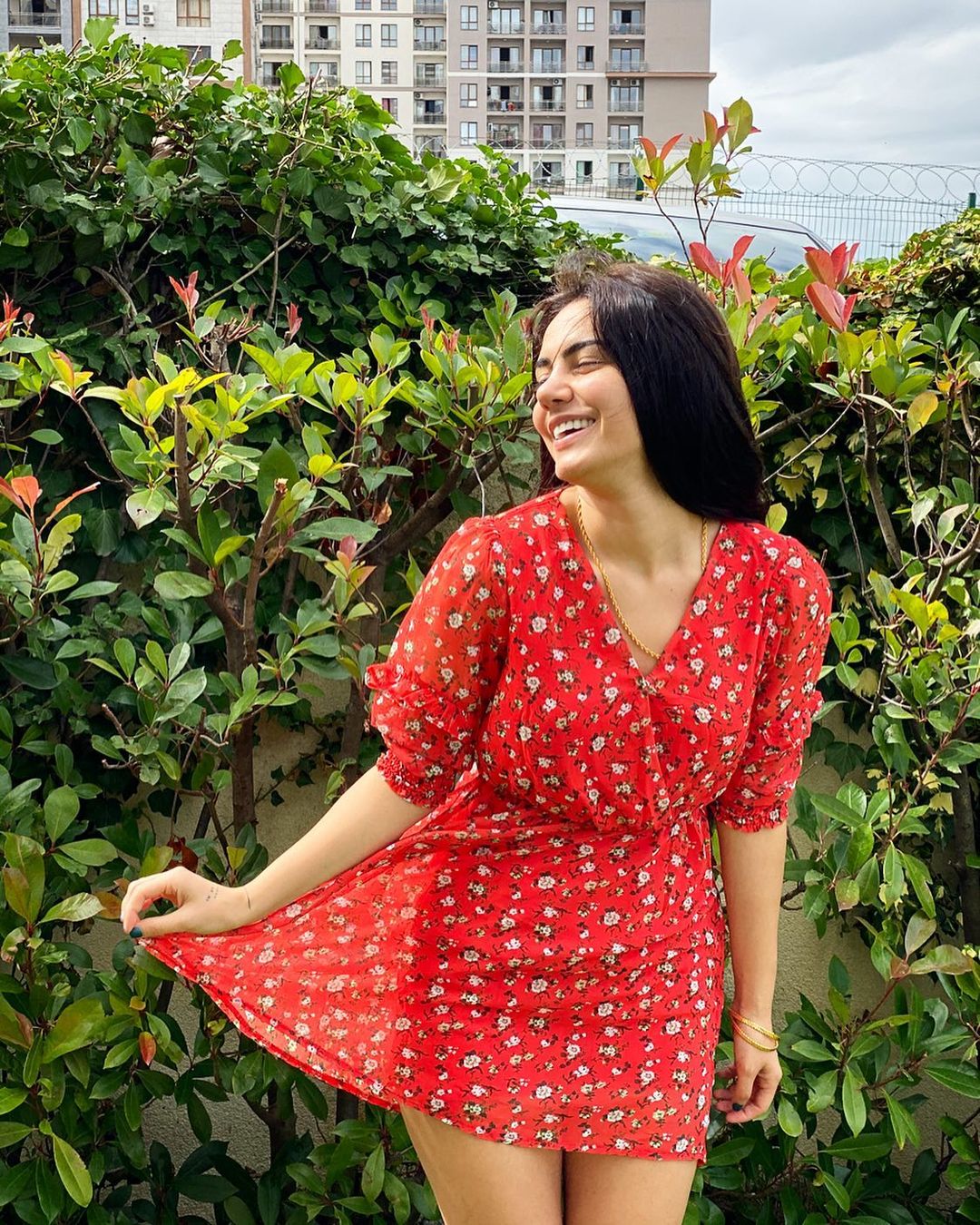 Vücudunu saran kırmızı taytıyla kamera karşısına geçen Ronay, balkonda verdiği pozları Instagram hesabında takipçilerinin beğenisine sundu.