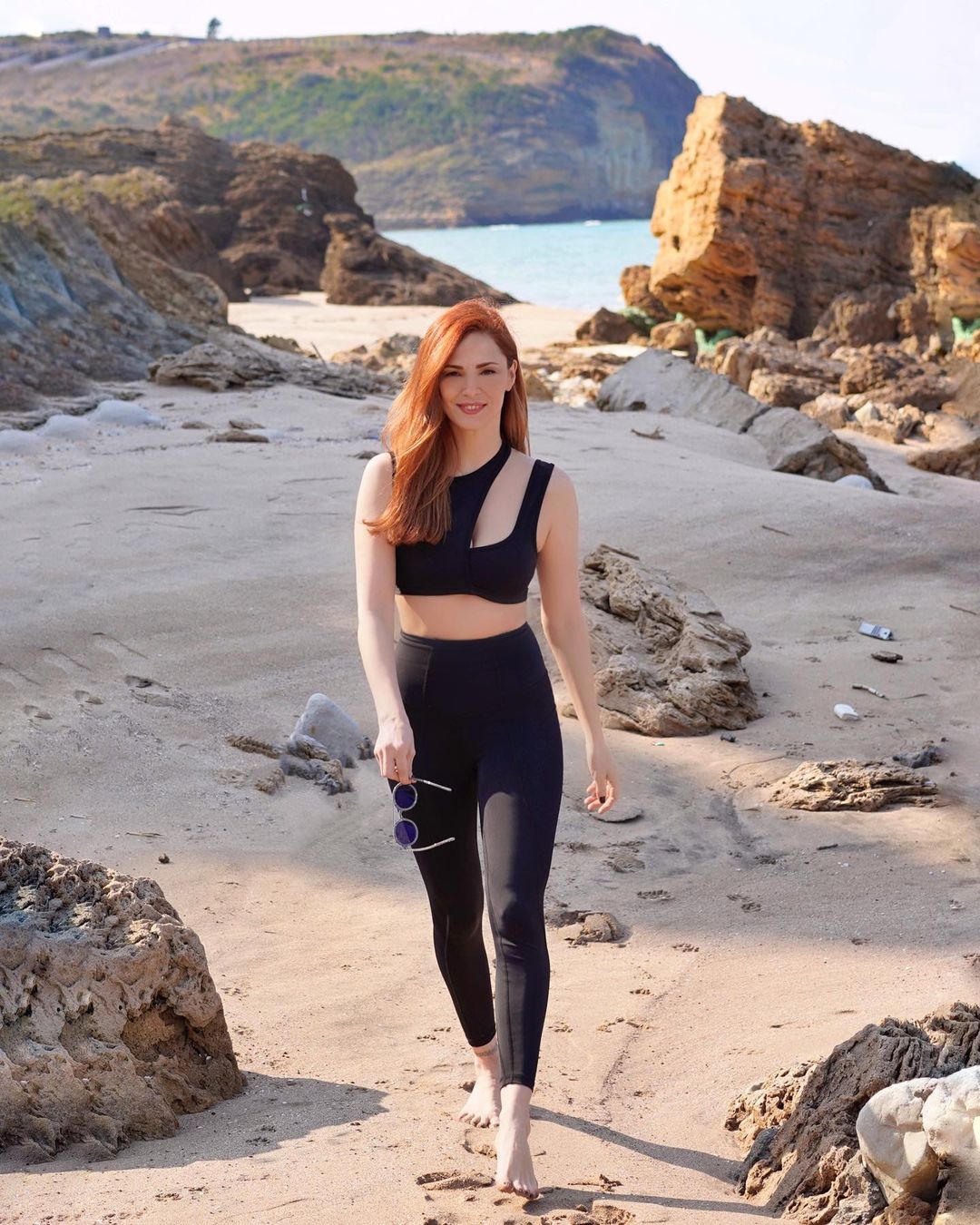 Ünlü oyuncu, karın bölgesinin açık kaldığı derin göğüs dekolteli deri üstü ve altıyla verdiği bir pozu Instagram hesabında yayınladı.