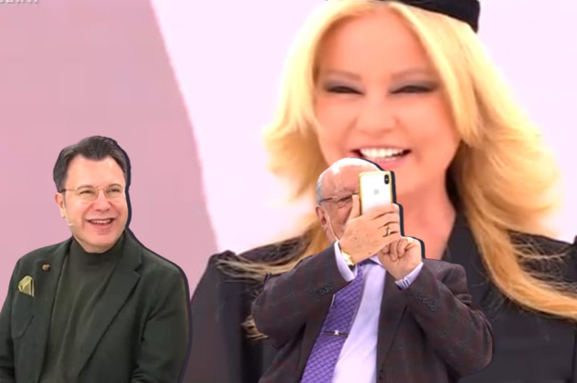 El emeği, ipek işlemeli hediyeyi takan Müge Anlı'nın o hallerini Avukat Rahmi Özkan fotoğraf çekerek kayda aldı.