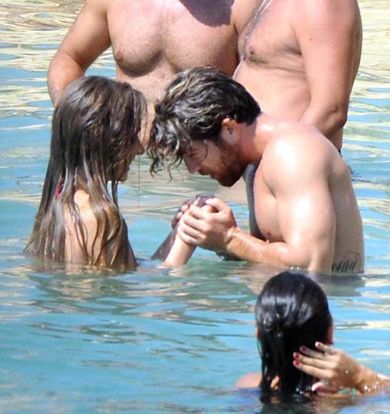 Denizde el ele, göz göze romantik anlar yaşayan çift, objektifleri fark edince sudan ayrı ayrı çıktı.