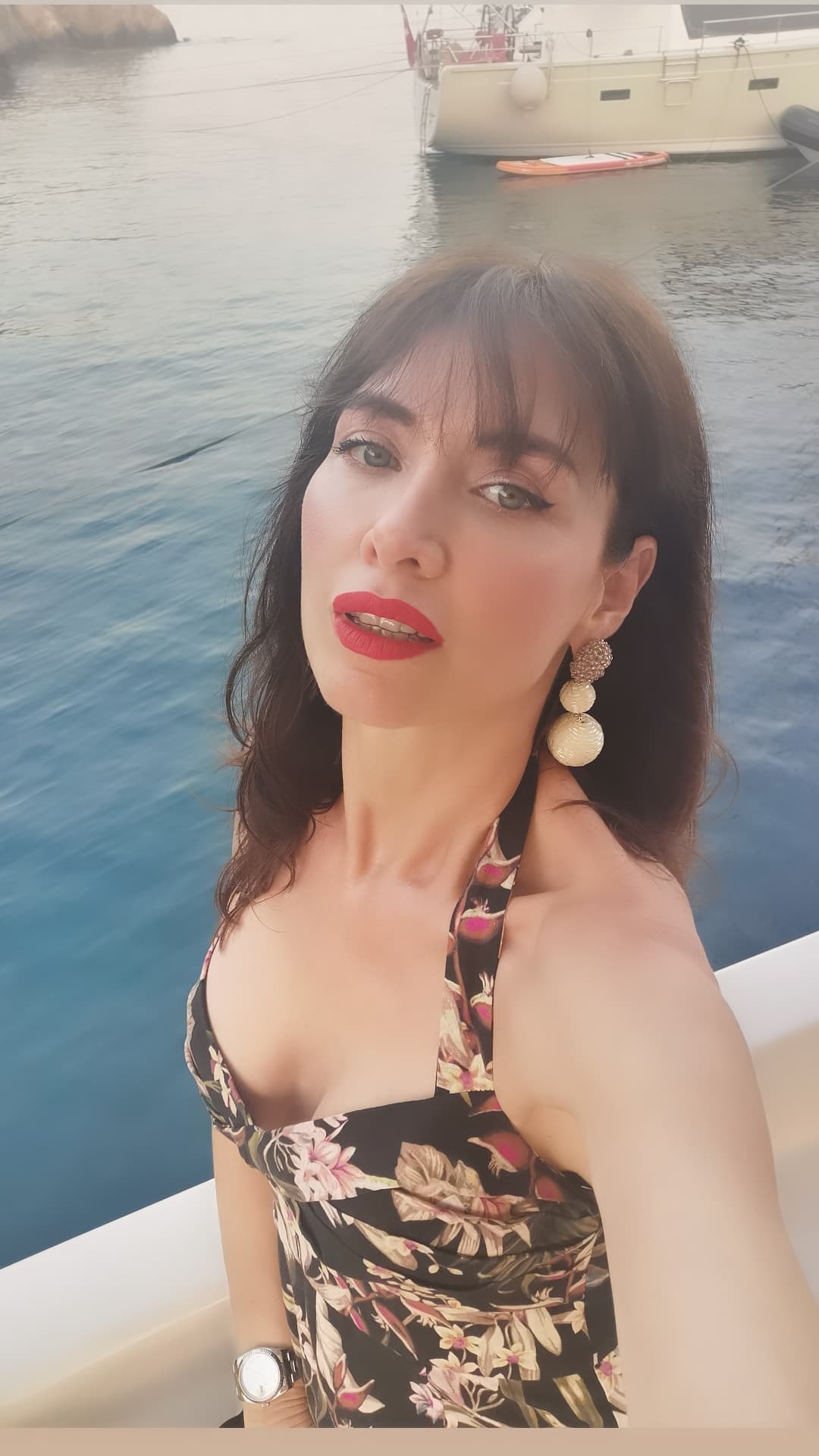 Eski manken, ilk olarak teknede tek başına verdiği pozları "Evliliğimizin 10.yılına girmemizin şerefine şurada bol gülümsemeli bir fotoğrafım olmasın mı?" notuyla takipçilerinin beğenisine sundu.