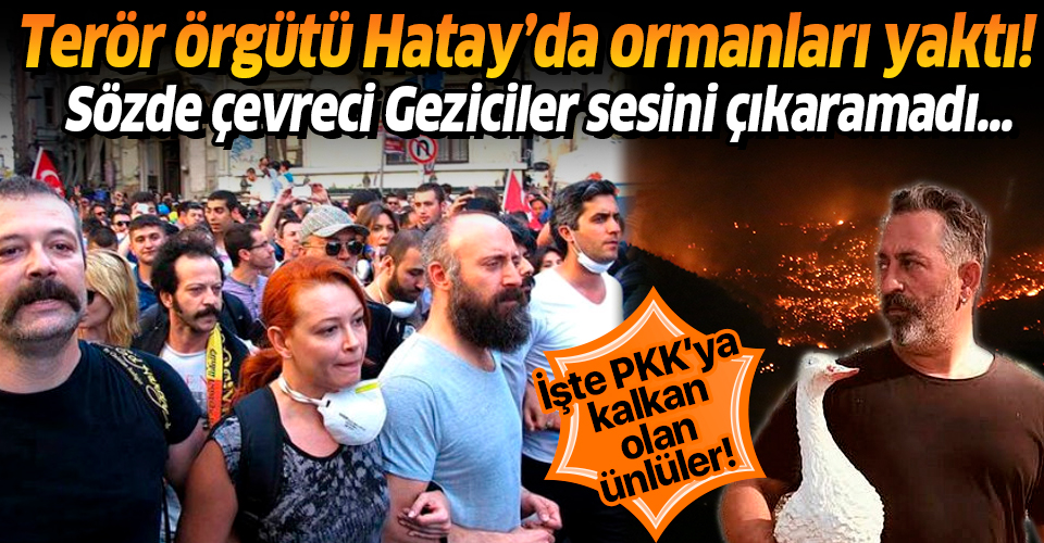 Doğa söz konusu olduğunda en ön safta yer alan sanat dünyasının sözde çevreci ünlüleri, Hatay'da PKK'nın çıkardığı yangınlar söz konusu olduğunda sessizliğe gömüldü. Terör karşısında ses çıkarmayan isimlere sosyal medyada tepki yağdı