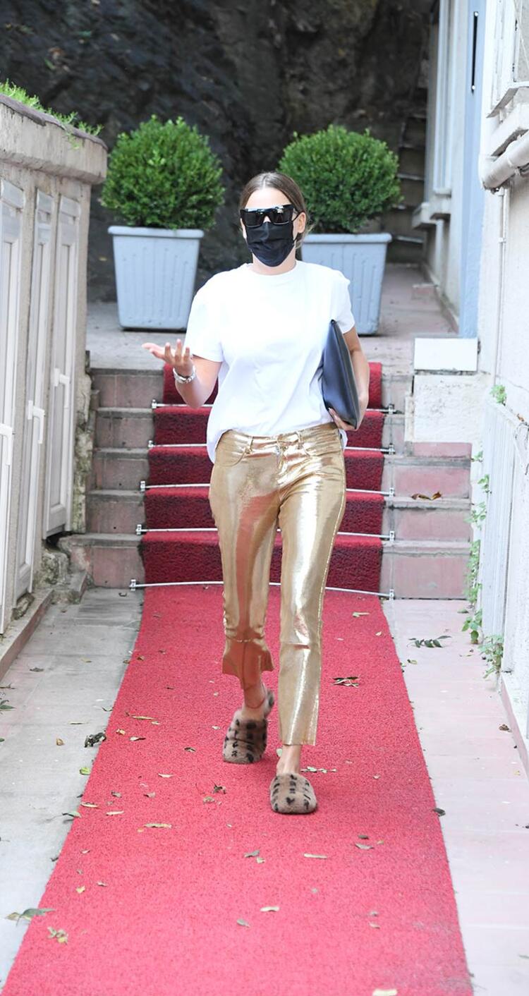 Serenay Sarıkaya, önceki gün Bebek'teki bir kaş tasarım merkezi çıkışı görüntülendi. Sarıkaya'nın 15 bin TL'lik terlikleri dikkat çekti.