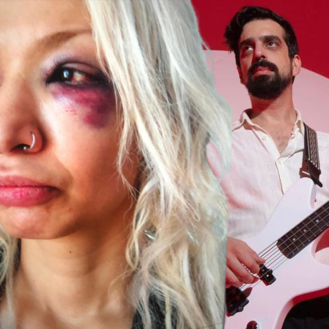 Genç kadın, 7 bin takipçisi bulunan Instagram hesabından grubunun bas gitaristi Tunaboylu tarafından şiddete uğradığını açıklayarak morarmış gözünün ve kırılan kolunun fotoğrafını da paylaştı.
