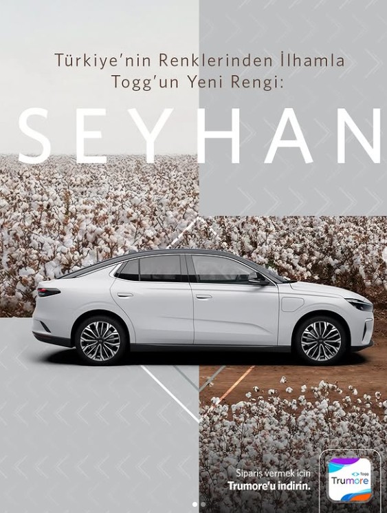 Mesaj: Togg'un sosyal medya paylaşımında, "Adana Çukurova'nın bereketli ovalarındaki pamuk tarlalarından ilham alan, Togg'un yeni rengi Seyhan ile tanışın" ifadeleriyle bölgenin tarımsal zenginliğine selam gönderildi.