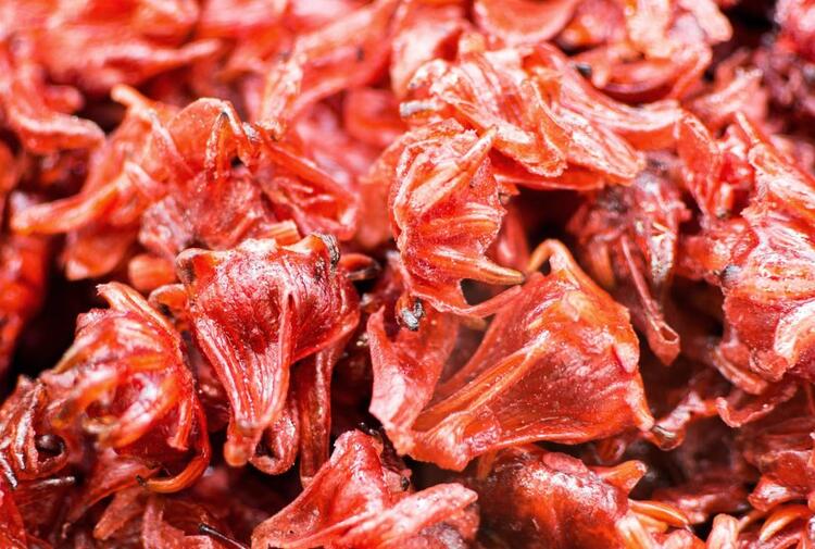 Kaynamış suyun içine bir tutam kurutulmuş hibikus atın.