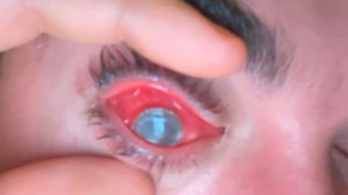 Uyandığında sağ gözü tahriş olmuş ve iltihaplanmıştı.