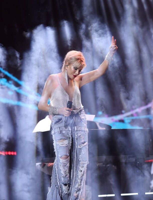 Ajda Pekkan şarkısını okurken sahnede ters parende atan dansçısı Pekkan'ın ödünü patlattı.