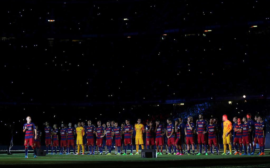 Yardımcı kaptanlar Mascherano, Busquets, Messi ve kaptan Iniesta'nın ardından sahaya çıkan teknik direktör Luis Enrique, 3 kupayla tamamladıkları geçen sezonu benzersiz bir yıl olarak değerlendirdi. Luis Enrique, yeni sezonda alacakları kupalarla taraftarlar başarılı bir sezon izleteceklerinin sözünü verdi.