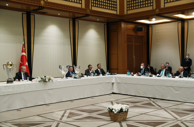 Başkan Recep Tayyip Erdoğan, Cumhurbaşkanlığı Külliyesi'nde Beşiktaş'ı kabul etti.