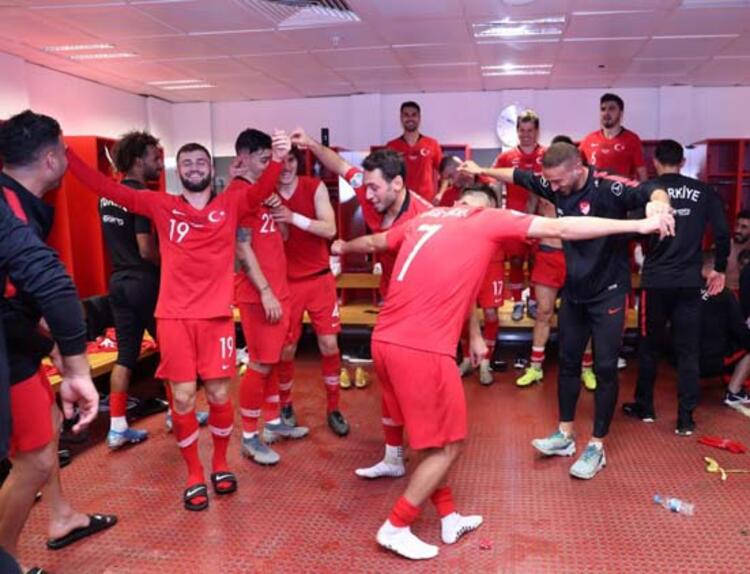 Önce taraftarlara üçlü çektiren milli futbolcular, ardından bu büyük zaferi soyunma odasında misket oynayarak kutlamaya devam etti. Cengiz, Cenk, Hakan, Ömer ve Çağlar'ın misket oynadığı görüntüler sosyal medyaya düştü.