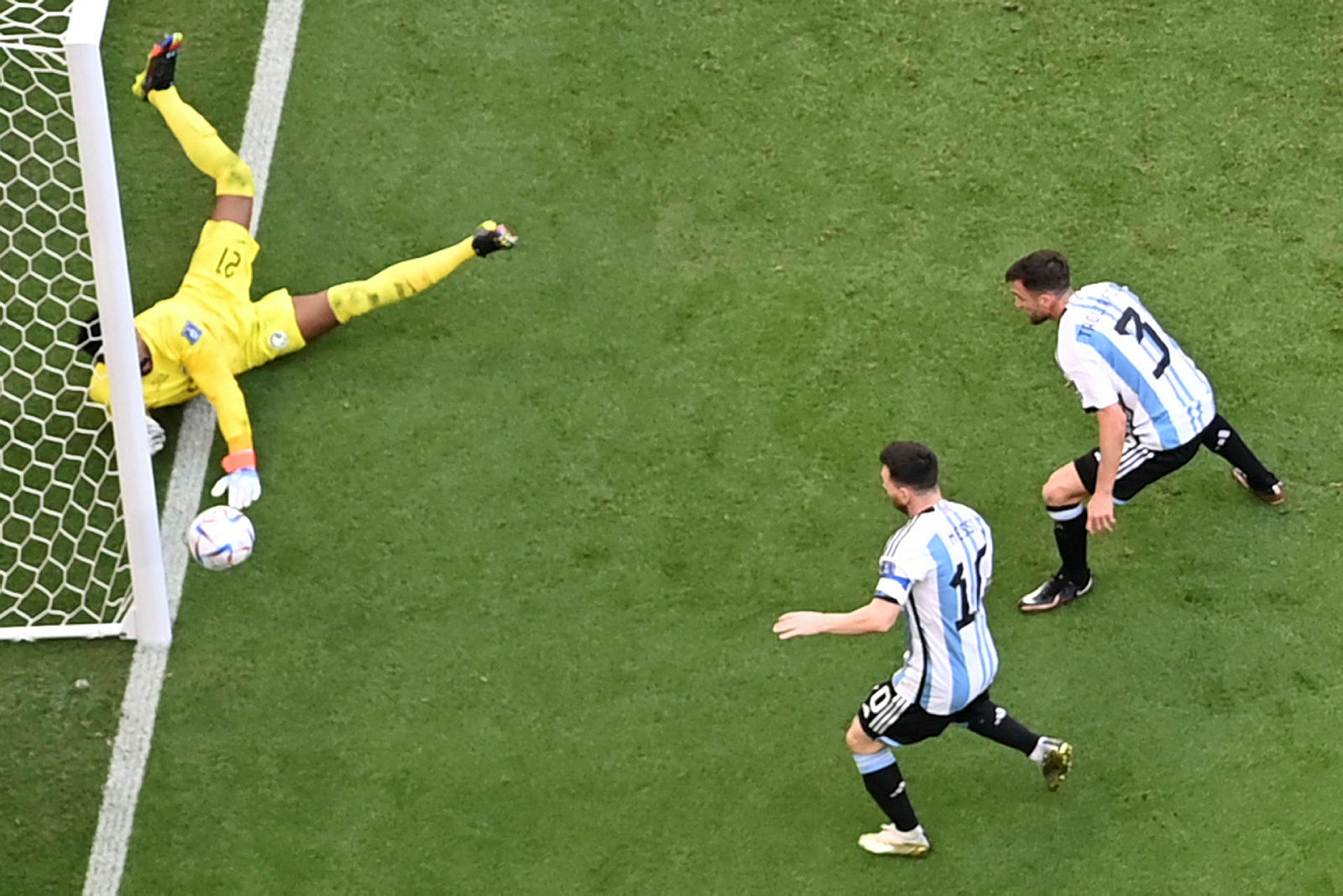 Arjantin'i öne geçiren golü 10. dakikada penaltıdan Lionel Messi kaydederken, Suudi Arabistan'ın sayılarını ise 48. dakikada Alshehri ile 53. dakikada Al Dawsari kaydetti.