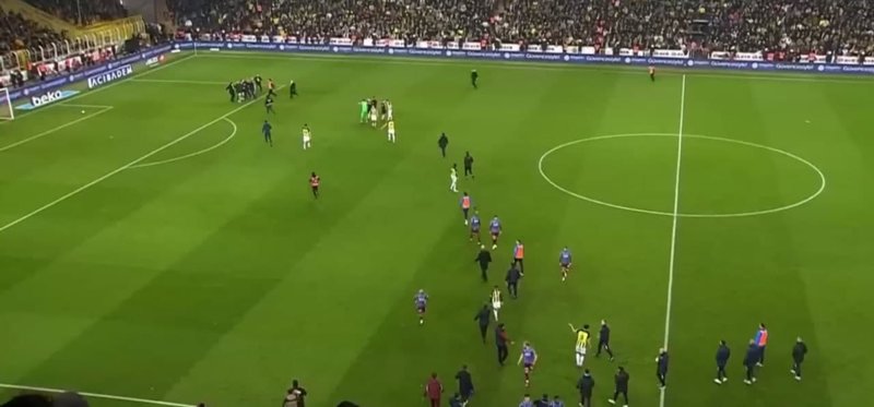 Taraftarın hakem Zorbay Küçük'ün üzerine doğru koştuğunu gören Fenerbahçeli oyuncular Altay Bayındır, Mert Hakan Yandaş ve Serdar Aziz araya girdi.