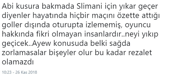 Fenerbahçe'nin sezon başında İngiltere'den büyük umutlarla transfer ettiği Islam Slimani'nin başarısız performansı taraftarları isyan ettirdi. Son olarak Trabzonspor maçındaki performansı nedeniyle hayal kırıklığı yaratan yıldız isme sarı lacivertli taraftarlar sosyal medyada büyük tepki gösterdi. İşte o tepkilerden bazıları...