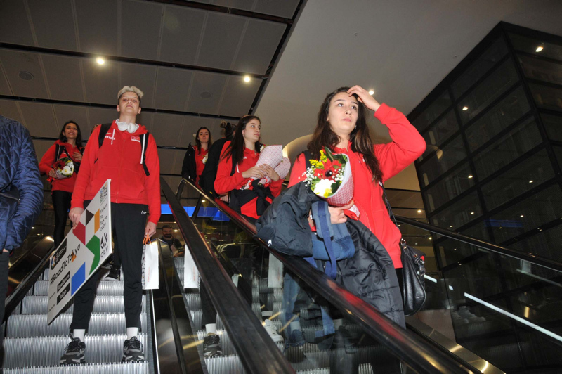 Hollanda'nın Apeldoorn kentindeki organizasyonda olimpiyat vizesi alan ay yıldızlı takım, Hollanda'dan kalkan uçakla İstanbul Havalimanı'na geldi. Bando tarafından karşılanan millilere çiçek takdim edildi. Kafilede oyuncuların ve teknik heyetin yanı sıra Türkiye Voleybol Federasyonu Başkanı (TVF) Mehmet Akif Üstündağ, A Milli Kadın Voleybol Takımı Menajeri Pelin Emniyetli, TVF Danışmanı Neslihan Demir Güler ve TVF yetkilileri yer aldı. Oyuncular, marşlar söyleyerek zaferi doyasıya kutladı.