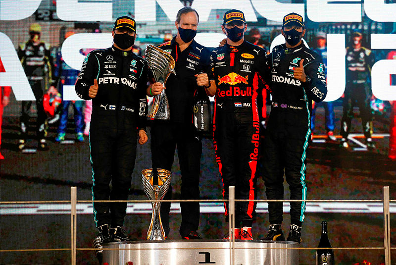 Mercedes pilotlarının sıralama turlarında elde ettikleri dereceler de yarış sonunda değişmedi. Fin Valtteri Bottas, Verstappen'in 15.976 saniye ardından ikinciliği, Hollandalı pilotun 18.415 saniye gerisinde yarışı bitiren Büyük Britanyalı Hamilton ise üçüncülüğü elde etti. Geceye ise 4 kez dünya şampiyonu Alman pilot Sebastian Vettel'in Ferrar'iye vedası damgasını vurdu.