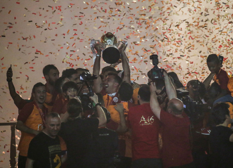Galatasaray, 2017-18 sezonu şampiyonluk kupasını; TFF Başkanı Yıldırım Demirören, yurt dışında olduğu için, TFF Başkanvekili Ali Dürüst ve Spor Toto Teşkilat Başkanı Muharrem Kasapoğlu'nun elinden aldı.