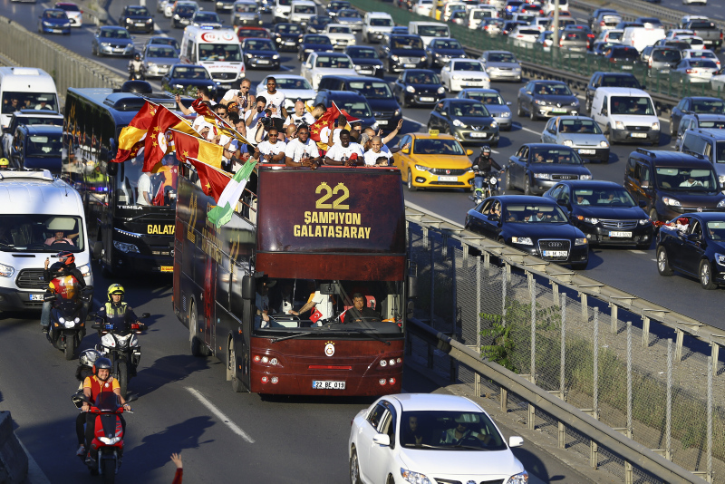Hazırlanan özel otobüsle Florya Metin Oktay Tesisleri'nden stada hareket eden sarı-kırmızılılar, yol boyunca şampiyonluk coşkusu yaşadı. Futbolcular, ellerindeki bayrakları sallayarak, şampiyonluk şarkıları söyledi.